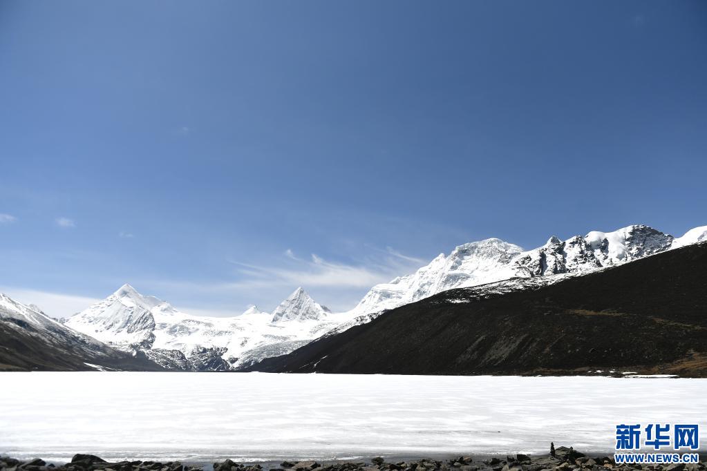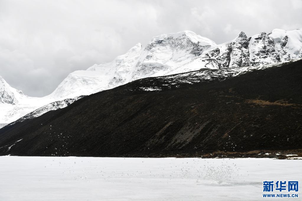 一陣強(qiáng)風(fēng)掠過(guò)薩普雪山腳下的冰湖時(shí)卷起湖面的薄冰(5月4日攝)。新華社記者 孫瑞博 攝