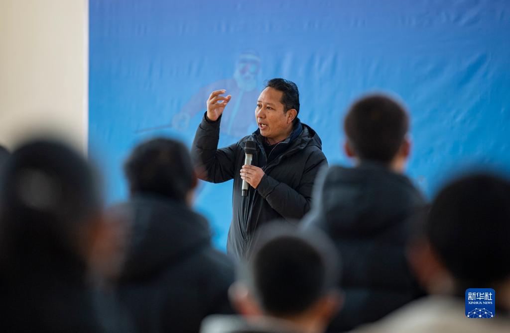 12月30日,西藏自治區(qū)體育局局長尼瑪次仁在國家體育總局“大心臟計劃”西藏自治區(qū)訓練營開營儀式現(xiàn)場,向?qū)W員們介紹訓練營情況。新華社記者 孫非 攝
