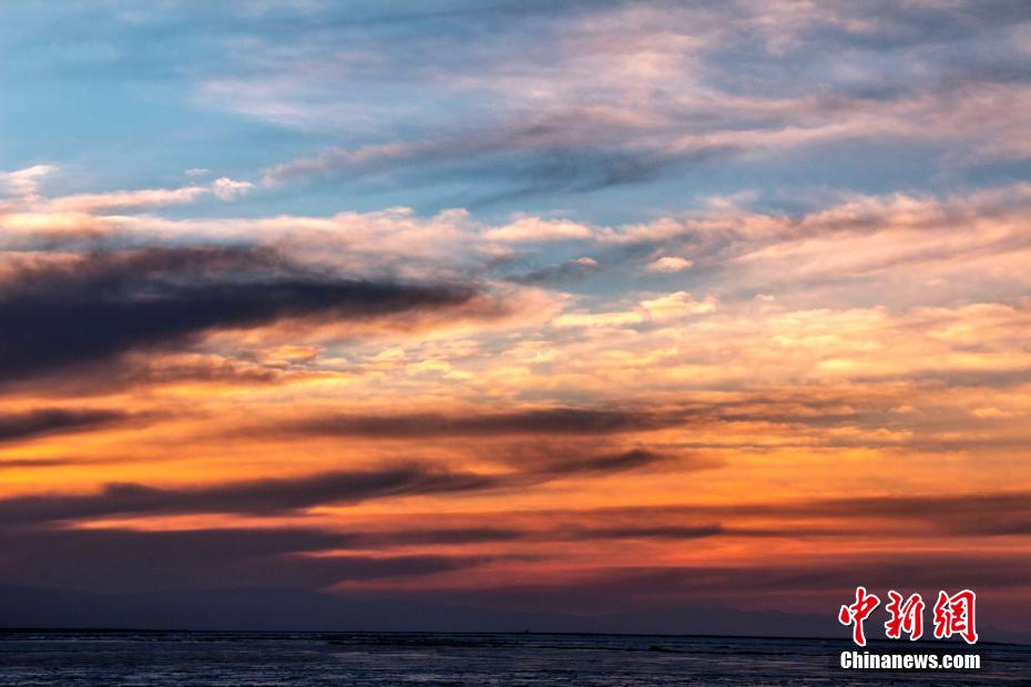 初春時(shí)節(jié),“高原藍(lán)寶石”青海湖還未開湖,青海湖二郎劍景區(qū)里,霞光萬道,宛若仙境。晚霞夾雜在清澈透明的藍(lán)天里,或淡粉色,或玫瑰紅,讓青海湖有了動感美,快來和小編一起領(lǐng)略這醉人景色吧。趙海梅 攝