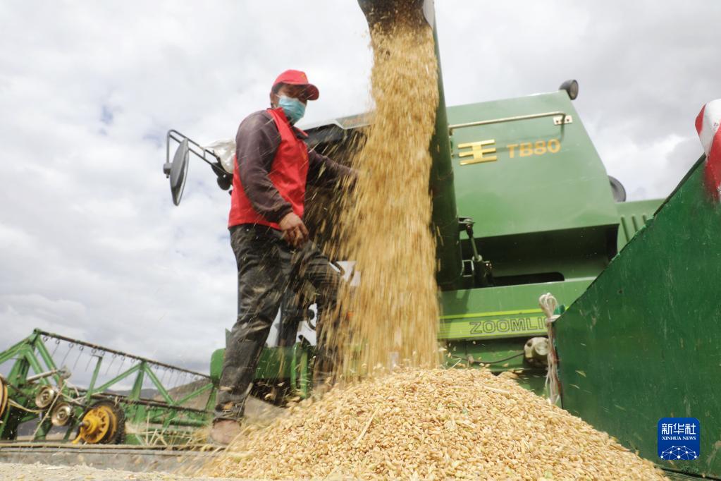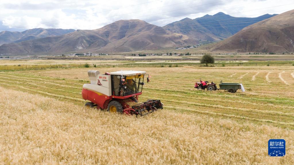 目前,西藏各地進入秋收時節(jié)。西藏拉薩市墨竹工卡縣農(nóng)民在積極防疫的同時,抓緊收割青稞,確保顆粒歸倉。