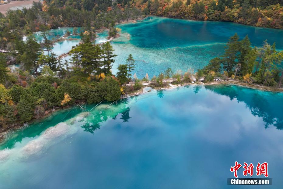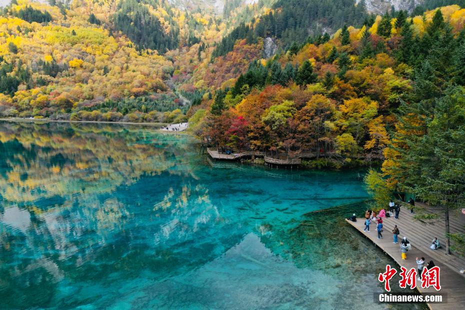 10月23日,深秋時(shí)節(jié),四川九寨溝如同油畫一般,漫山遍野的紅葉絢麗多彩,與清澈見底的湖水交相輝映,美輪美奐,“秋日童話”正上演。 張浪 攝