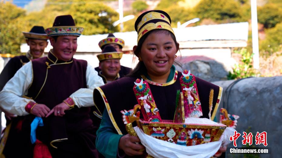 11月24日恰逢藏歷十月初一,西藏林芝迎來2023年工布新年,這是西藏最早的新年。工布新年以其悠久的歷史、鮮明的特色、豐富的內(nèi)涵,于2006年被列入第一批西藏自治區(qū)非物質(zhì)文化遺產(chǎn)保護(hù)名錄。圖為村民身著節(jié)日盛裝手捧“切瑪”拜年。 土旦曲扎 攝