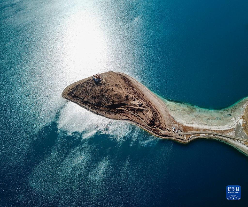 坐落于羊湖北岸一座半島上的日托寺(無人機照片,12月11日攝)。新華社記者 姜帆