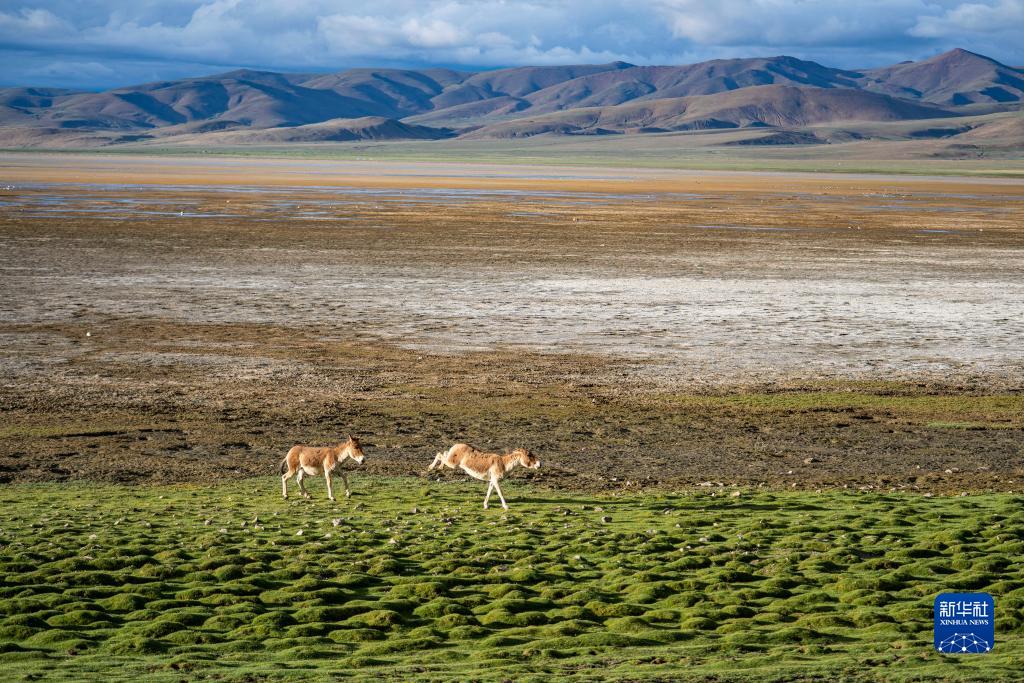 在哲古草原上嬉戲的藏野驢(6月28日攝)。新華社記者 孫非 攝
