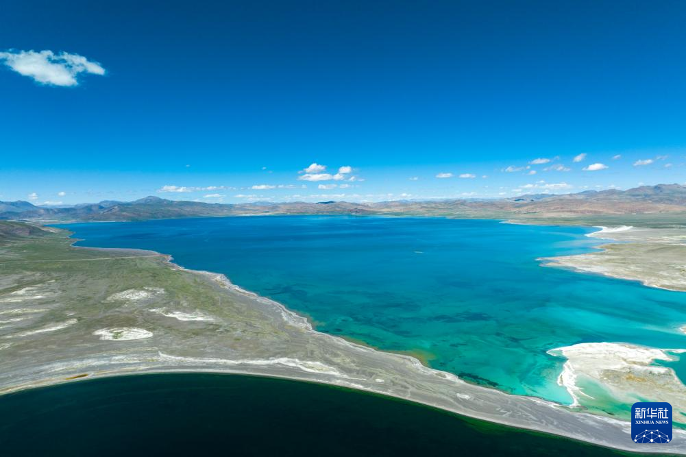 圖為薩普雪山山腳下清澈如鏡的撒木錯美景(8月27日攝)。新華網(wǎng)發(fā) 蘇思源 攝