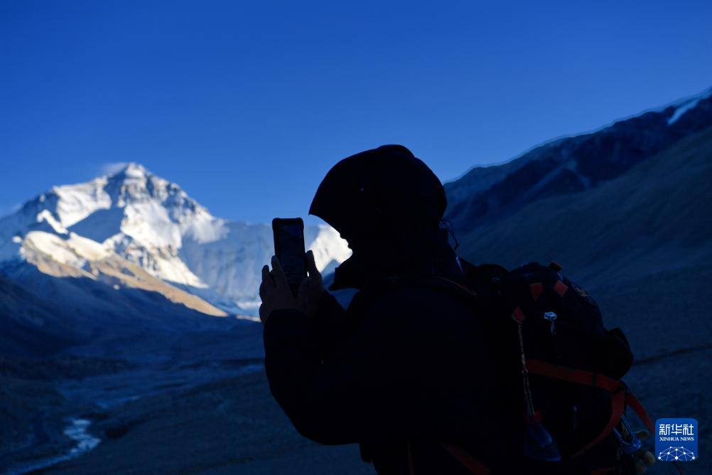 深秋,西藏日喀則市定日縣天高氣爽,游客前來(lái)觀賞世界最高峰——珠穆朗瑪峰。