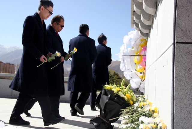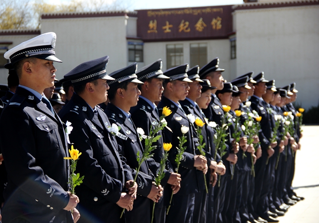 緬懷革命先烈,傳承革命精神?!拔覀儾荒芡洖闋幦∶褡褰夥藕腿嗣裥腋6I身的烈士。他們拋頭顱、灑熱血換來了我們今天的幸福生活,他們是人民心中永恒的豐碑?!痹诂F場的拉薩市公安局張警官說。