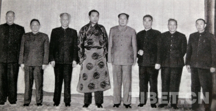 圖為1961年1月23日,毛澤東主席和中央領(lǐng)導(dǎo)接見十世班禪時(shí)的合影。圖中左起:李維漢、鄧小平、劉少奇、十世班禪、毛澤東、周恩來、陳云、張經(jīng)武。(中國西藏網(wǎng) 記者/孔夏 圖片翻拍自由中共黨史出版社出版的書籍《張經(jīng)武與西藏解放事業(yè)》)