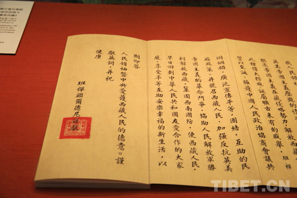 圖為十世班禪額爾德尼敬獻(xiàn)毛主席的獻(xiàn)詞,民族文化宮博物館藏。