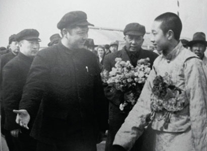 1951年4月中旬,習(xí)仲勛與十世班禪第一次會(huì)面。那時(shí),十世班禪率領(lǐng)班禪堪布會(huì)議廳官員赴京途經(jīng)西安,習(xí)仲勛作為西北局和西北軍政委員會(huì)主要負(fù)責(zé)人,到機(jī)場(chǎng)迎接。班禪走下飛機(jī)時(shí),一個(gè)眉清目秀、和善聰慧、舉止文雅、彬彬有禮的英俊藏族少年活佛形象,出現(xiàn)在習(xí)仲勛的眼前。在飛機(jī)舷梯下,十世班禪緊緊握住習(xí)仲勛的手,心情激動(dòng)地說:“我們是專程去北京向毛主席致敬的!我要把藏族人民對(duì)中央人民政府和毛主席的良好祝愿親口轉(zhuǎn)達(dá)給毛主席。”在當(dāng)晚歡迎會(huì)上,十世班禪表示堅(jiān)決擁護(hù)中央人民政府,決心與西藏各界愛國(guó)人士一道為西藏的解放和藏族人民的團(tuán)結(jié)努力奮斗?!坝兄静辉谀旮摺?,十世班禪的愛國(guó)熱情和坦誠(chéng)豪爽的性格給習(xí)仲勛留下了深刻的印象。當(dāng)天,習(xí)仲勛把他接到西北局大院自己家中,十世班禪與習(xí)仲勛的大兒子習(xí)富平同齡,兩人很快就熟稔起來。