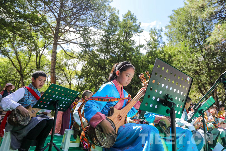 圖為扎念琴班的學(xué)生們正在表演。 圖片由堆龍德慶區(qū)青少年活動(dòng)中心運(yùn)營方提供