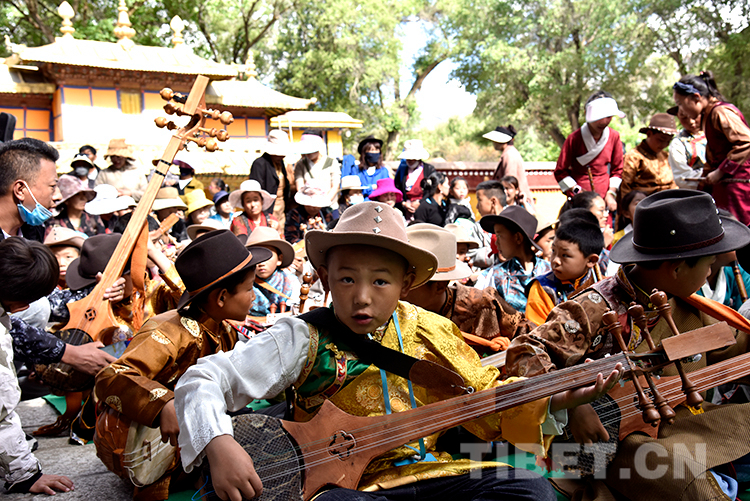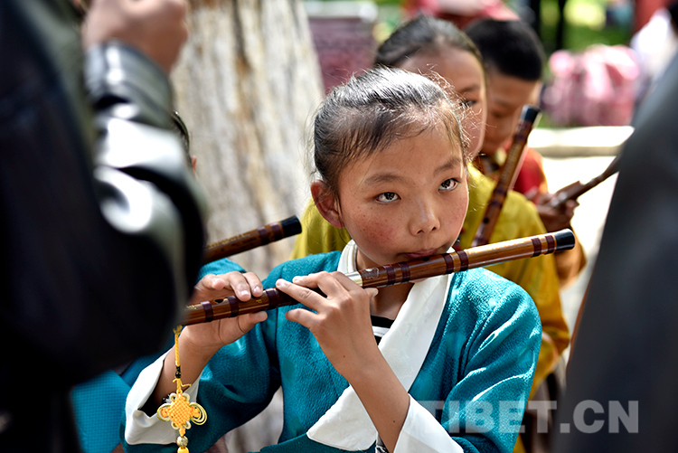 中國西藏網(wǎng)訊 6月16日,西藏自治區(qū)堆龍德慶區(qū)青少年活動(dòng)中心春季課程展演活動(dòng)在嗩吶演藝的《好漢歌》中拉開序幕。此時(shí),羅布林卡藏戲演出臺(tái)前已聚攏了許多家長和市民。