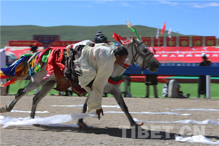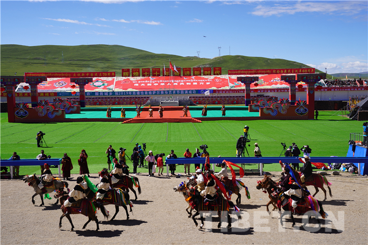 圖為2019“羌塘恰青格薩爾賽馬藝術(shù)節(jié)”開幕式上的馬術(shù)表演 攝影:王淑