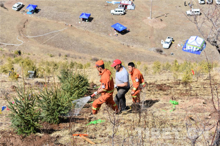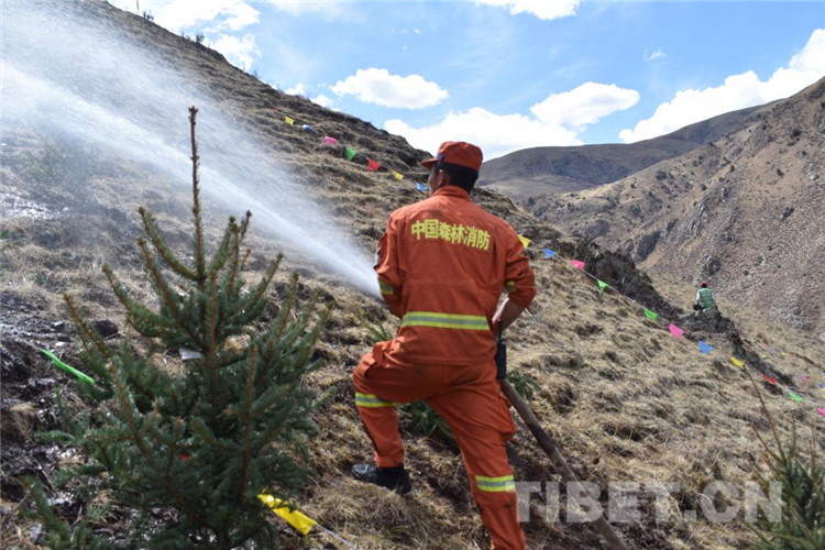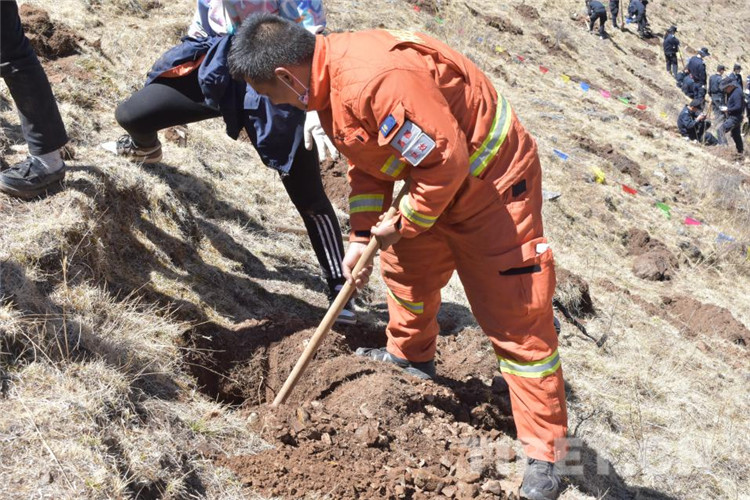 圖為昌都市森林消防支隊江達(dá)中隊積極參加駐地植樹活動