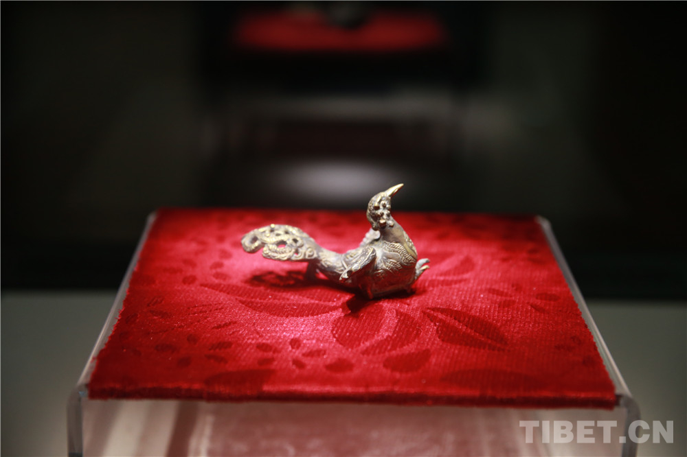 圖為海西州博物館內(nèi)的唐代鎏金鳳鳥 攝影:楊月云