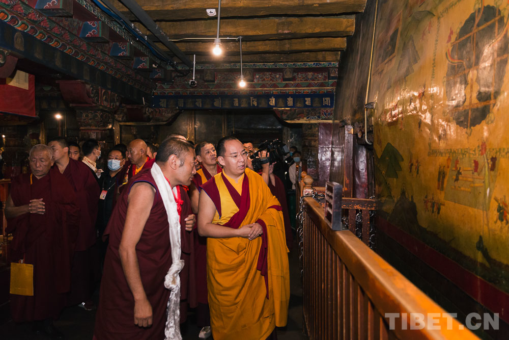 圖為十一世班禪在大昭寺僧眾陪同下參觀寺內(nèi)壁畫 攝影:鄭朔