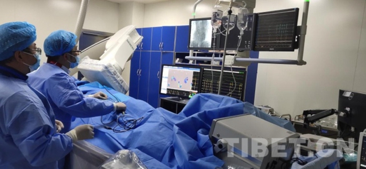 圖為開展西藏自治區(qū)首例三維心電標(biāo)測系統(tǒng)指導(dǎo)下預(yù)激綜合征及陣發(fā)性室上速射頻消融術(shù) 圖片由廣東援藏醫(yī)療隊(duì)提供