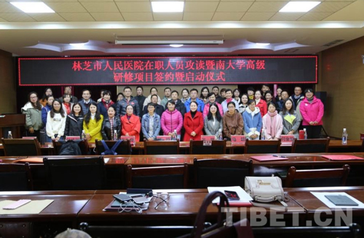 圖為暨南大學(xué)研究生培養(yǎng)項(xiàng)目在林芝市人民醫(yī)院啟動(dòng) 圖片由廣東援藏醫(yī)療隊(duì)提供