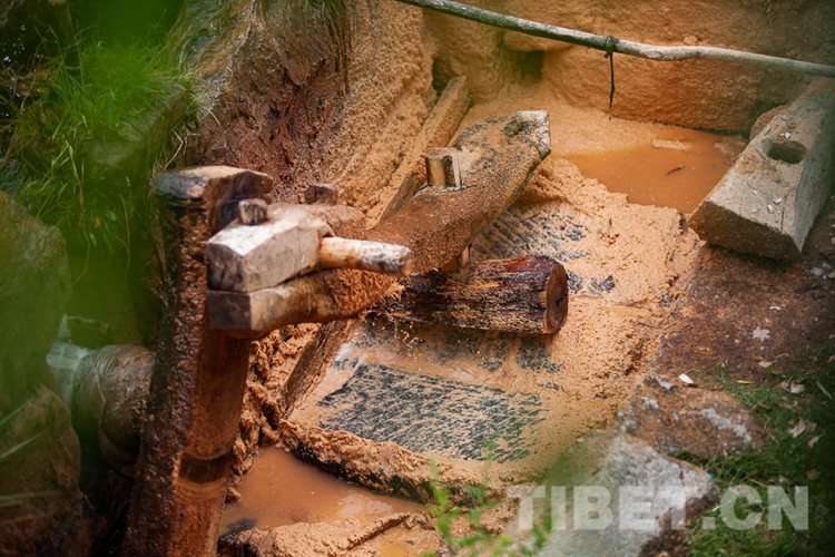 圖為吞達(dá)村藏香制作園內(nèi)正在研磨的水磨 攝影:趙耀