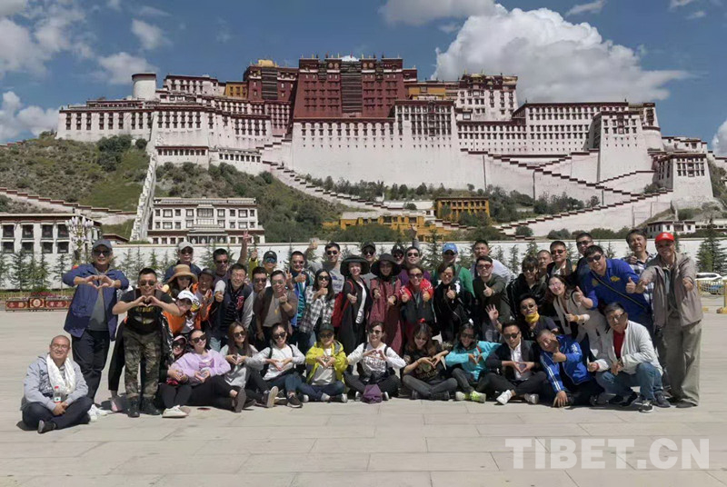 這是中國(guó)評(píng)劇院藝術(shù)家在拉薩演出結(jié)束后,來(lái)到布達(dá)拉宮前合影留念(唐召明提供,2018年9月19日攝)