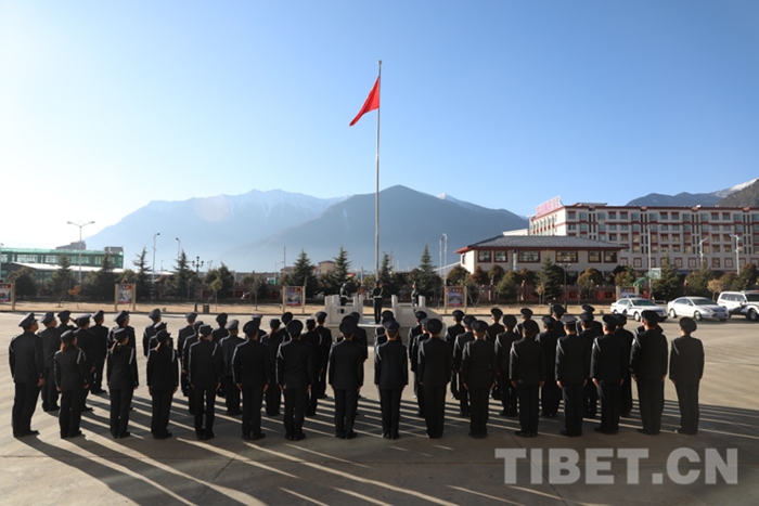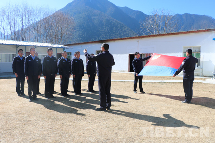 圖為林芝邊境管理支隊機(jī)關(guān)舉行升旗儀式 攝影:劉安震鏞