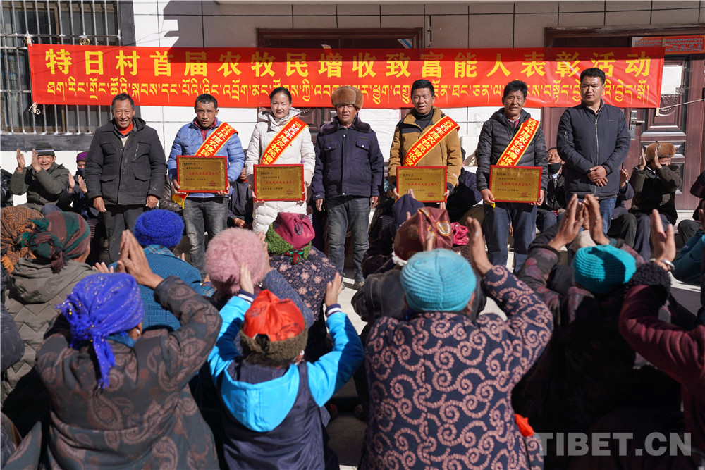 在表彰大會上,特日村第一支部書記米瑪扎西說:“這次特地從黨建經(jīng)費中拿出2000元,給4位致富能人表彰,就是為了鼓勵有更多的能人帶領(lǐng)大家共同脫貧奔小康?!毕乱徊?,村“兩委”希望以這次致富表彰大會為動力,最大限度發(fā)揮致富帶頭人示范引領(lǐng)和輻射帶動作用,以傳、幫、帶、教等方式帶領(lǐng)村民們向著共同富裕的目標(biāo)不斷前進。