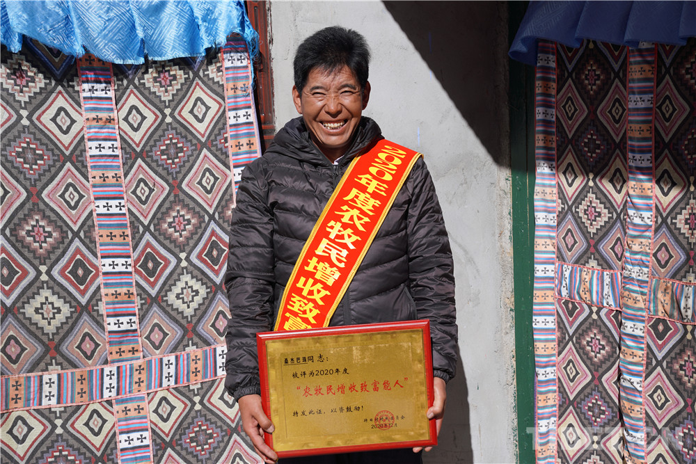 三組村民格桑頓珠,自2019年開始帶動村民在西藏那曲市安多縣、日喀則市仁布縣、拉薩等地承包項目。僅2020年,就帶動本村12個村民就業(yè),日人均工資達250元以上,共創(chuàng)收達60萬元。