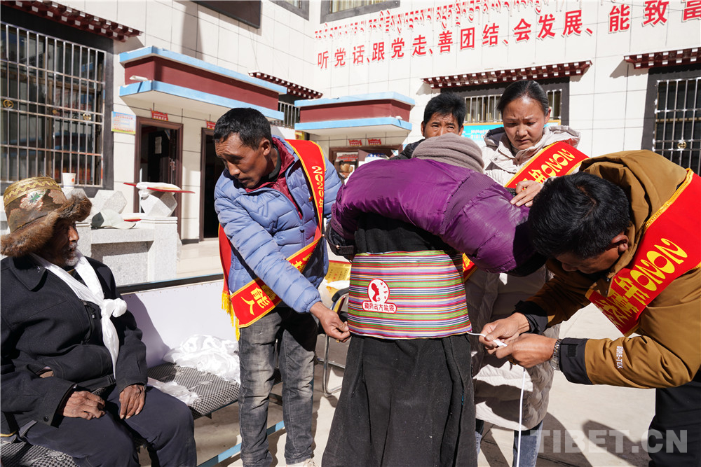 先富起來的人們集中慰問了村里10名老人,送去了10條被子、10套藏藥古方鹽袋等價值近3000元的慰問品,得到了村民們的贊譽。