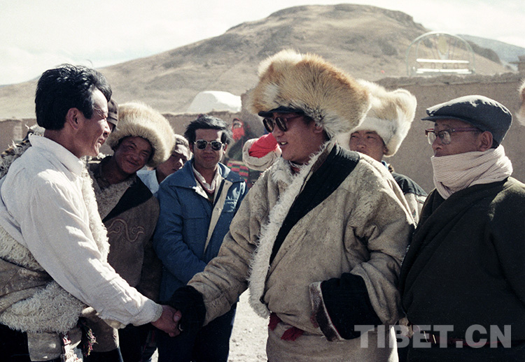 圖為率隊參加文部辦事處基層政權(quán)建設(shè)工作現(xiàn)場會的時任那曲地區(qū)行署專員土登才旺(中)與文部辦事處干部交流(唐召明1989年12月28日攝)