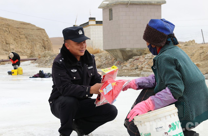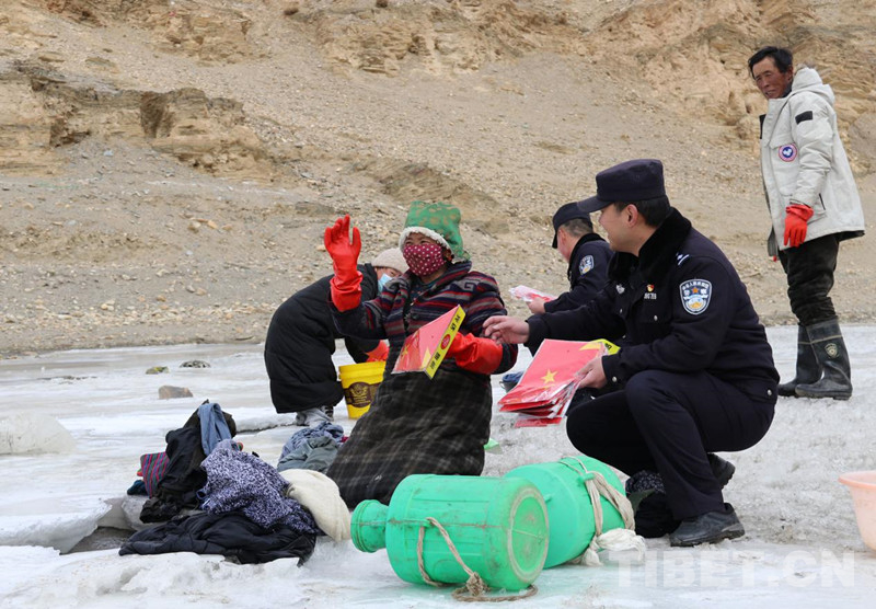 在群眾家里、街道上、冰河上,直克鄉(xiāng)邊境派出所民警向群眾送出了一面面嶄新的國旗,鮮紅的國旗映紅了每個人的臉龐,將揚帆啟航新征程的祈愿深入每個人的心中。直克鄉(xiāng)索白村退伍老兵朗加激動地說:“國旗是祖國的象征和標志,需要共同守護。在雪域高原上,你們戰(zhàn)嚴寒、耐寂寞,披星戴月、頂風踏雪,燃起了警民‘共話護邊’的愛國熱情,謝謝你們用實際行動溫暖著我們。”