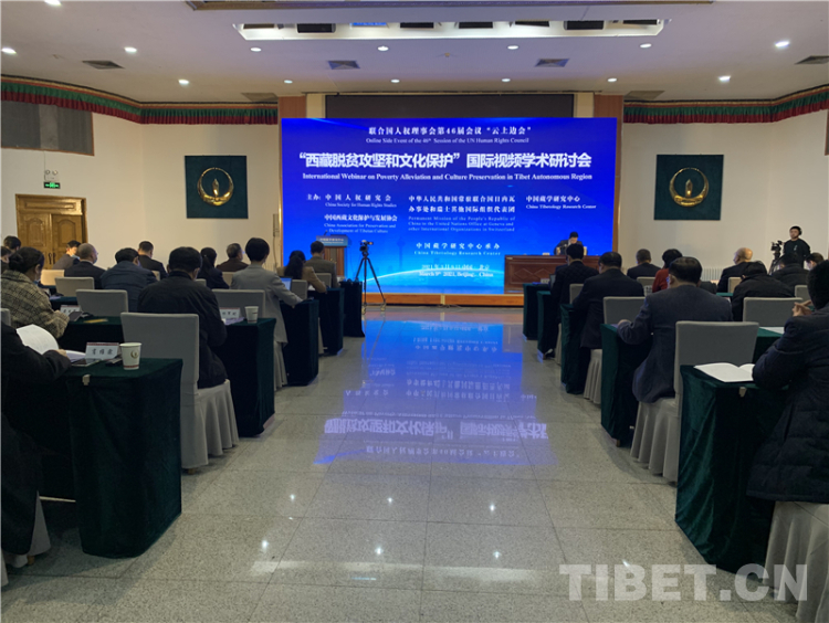 中國西藏網(wǎng)訊 3月9日,聯(lián)合國人權理事會第46屆會議“西藏脫貧攻堅和文化保護”云上邊會采用線上線下結(jié)合方式舉行。線下主會場設在位于北京的中國藏學研究中心。來自境內(nèi)外有關減貧和文化保護領域的專家學者參加了研討。