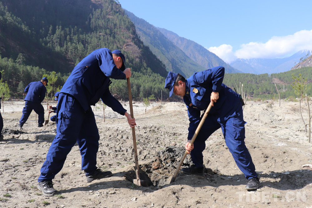 西藏林芝:植樹(shù)節(jié) 為駐地再添新綠