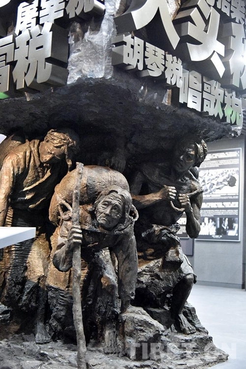 圖為西藏百萬(wàn)農(nóng)奴解放紀(jì)念館內(nèi)反映舊西藏多如牛毛的苛捐雜稅的雕塑 攝影:王媛媛