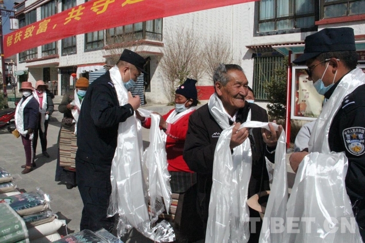 中國(guó)西藏網(wǎng)訊 大米、面粉、面條、食用油……當(dāng)西藏聶拉木出入境邊防檢查站民警將一袋袋物資搬進(jìn)西藏自治區(qū)日喀則市樟木新區(qū)活動(dòng)廣場(chǎng)時(shí),大家面帶微笑,手捧哈達(dá),連連稱(chēng)謝。