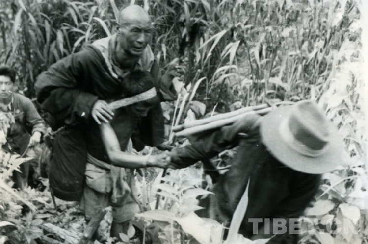 19519年前,宗本扎巴騎在人背上進(jìn)入墨脫的情景