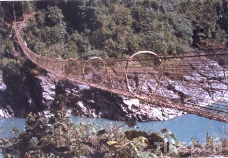 墨脫群眾渡江通行的主要交通之一“藤網(wǎng)橋”。