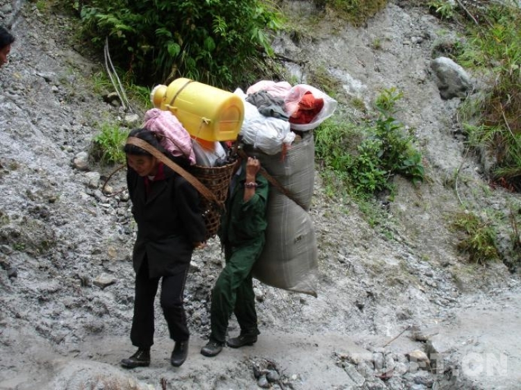 由于境內(nèi)交通閉塞,交換是墨脫門巴族、珞巴族群眾獲取生活必需品的重要途徑。而對外進(jìn)行物資交換,往返途中還要背負(fù)重物,翻越高山陡崖、跋涉湍急溪流,爬天梯、滑溜索、過獨(dú)木橋,一次往返需10至20天左右,勞動(dòng)強(qiáng)度和艱險(xiǎn)程度之大令人瞠目結(jié)舌,沿途殘留的人畜白骨充分印證了此路之艱險(xiǎn)。