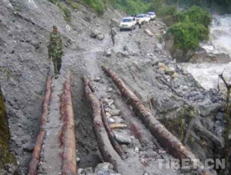 2005年6月墨脫公路段出現(xiàn)自然塌方損毀嚴(yán)重。