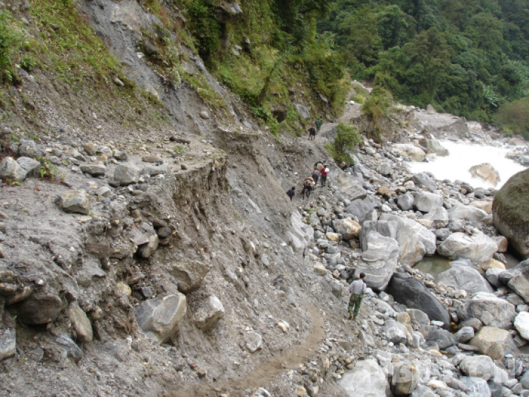 本世紀(jì)初,墨脫的通鄉(xiāng)道路即狹窄又陡峭,沒有防護(hù)措施,僅靠騾馬和人力通行。