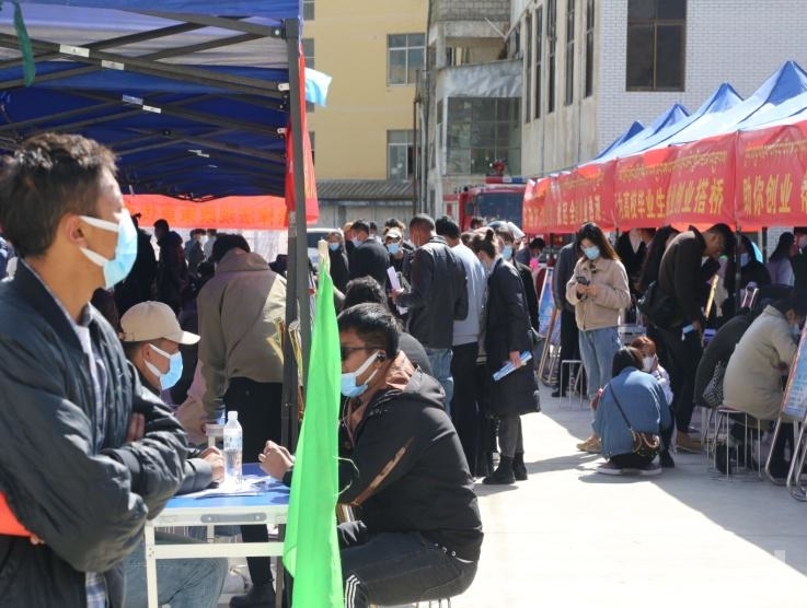 圖為山南市“春風(fēng)行動”暨待業(yè)大學(xué)生、城鎮(zhèn)失業(yè)人員專場招聘會現(xiàn)場。山南市人社局 供圖