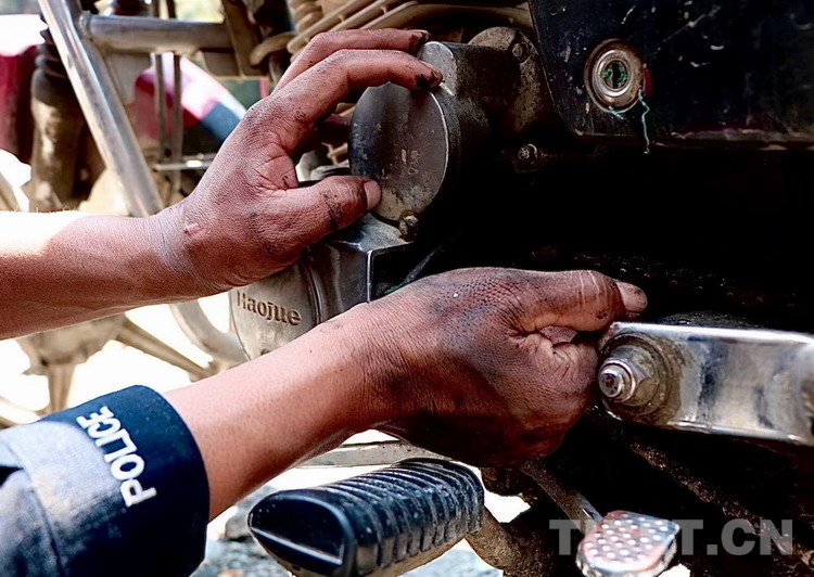 如果你經(jīng)過(guò)日喀則邊境管理支隊(duì)陳塘邊境派出所頓樟執(zhí)勤點(diǎn),你有可能會(huì)在執(zhí)勤點(diǎn)旁邊的空地上看見(jiàn)一位不停揮舞著扳手,雙手沾滿機(jī)油的民警正圍著摩托車忙碌著。他叫王昱隆,是陳塘邊境派出所的一名民警,年初被分配到頓樟執(zhí)勤點(diǎn),到現(xiàn)在他已經(jīng)義務(wù)幫助不少地過(guò)往行人維修摩托車了。