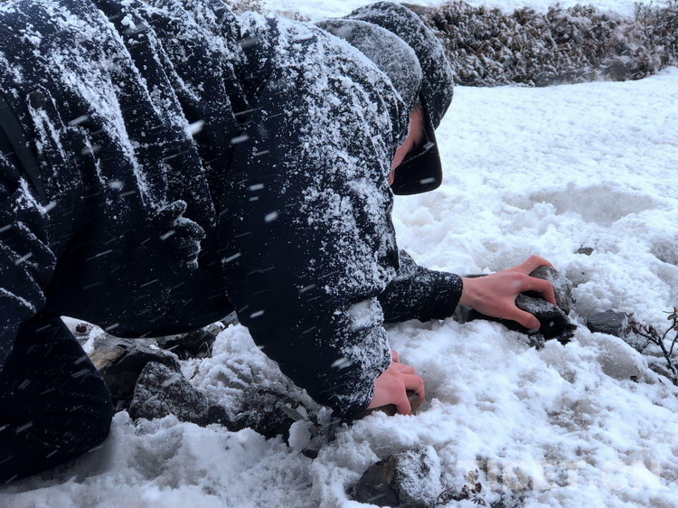 西藏日喀則邊境管理支隊(duì)貢當(dāng)邊境派出所拉青拉的執(zhí)勤民警開(kāi)始一天的巡邏工作。巡邏點(diǎn)位要穿越較厚的積雪區(qū),攀爬被冰雪覆蓋的陡坡,一路危險(xiǎn)重重,為了不增加負(fù)擔(dān),除了必要的警用裝備,大家都是最大限度的輕裝簡(jiǎn)行,連干糧和水都是定量攜帶、定時(shí)食用。巡邏車碾冰軋雪,在茫茫雪海留下一道清晰的車轍,一路荒無(wú)人煙,積雪越來(lái)越厚。在距離界樁不到兩百米的地方,巡邏車被數(shù)十厘米厚的積雪攔住去路,大家只好下車徒步前進(jìn),由于風(fēng)大路險(xiǎn),民警們只能彎著腰手腳并用匍匐著前行,隊(duì)伍里只能聽(tīng)到沉重的喘息聲和腳踏積雪咯吱聲。一百多米的路走了二十分鐘,最終到達(dá)界樁,大家來(lái)不及休整,立刻展開(kāi)觀察、警戒、檢跡記錄。積雪覆蓋的界樁旁,巡邏民警整齊列隊(duì),面向國(guó)旗,緊握右拳,朝著國(guó)旗莊嚴(yán)敬禮:“邊境有我,請(qǐng)祖國(guó)放心!”