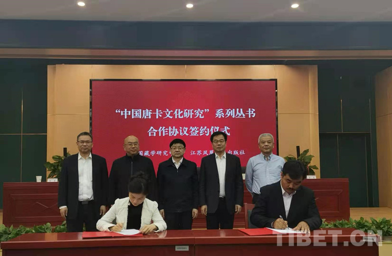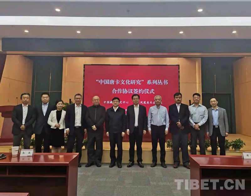 中國西藏網(wǎng)訊 5月12日,中國藏學(xué)研究中心與江蘇鳳凰出版?zhèn)髅郊瘓F(tuán)江蘇鳳凰美術(shù)出版社就“中國唐卡文化研究”系列叢書合作協(xié)議簽字儀式在京舉行。藏研中心黨組書記陳宗榮,江蘇省委宣傳部常務(wù)副部長、省新聞出版局(省版權(quán)局)局長、省電影局局長焦建俊,江蘇鳳凰美術(shù)出版社社長陳敏,藏研中心藏醫(yī)藥研究所副所長羅布扎西分別致辭。藏研中心副總干事廉湘民主持簽字儀式。