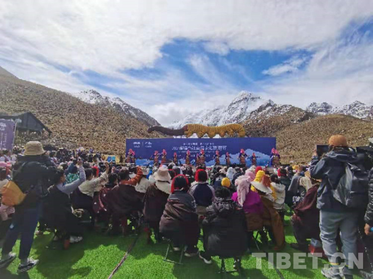當日,村民們早早來到姆藍雪山下,等候著開幕式的開始。開幕式上,大家觀賞了《脫貧之路》《幸福生活》《輪回圣水》及《歡樂的當雄草原》等精彩表演。