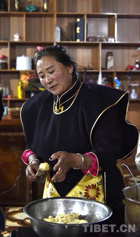 圖為2020年11月,工布新年“古突”夜,一位藏族婦女在制作“結(jié)達” 攝影:王媛媛