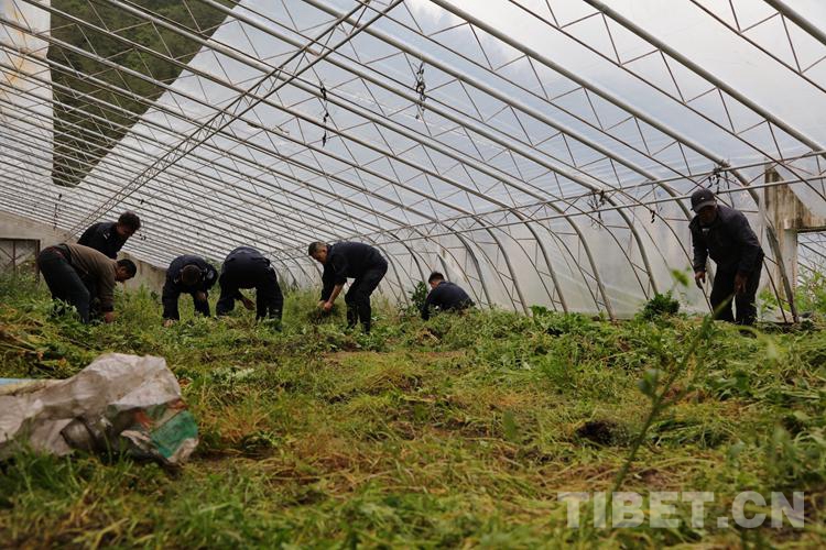 圖為西藏亞東出入境邊防檢查站民警幫助村民在村溫室大棚種植蔬菜 攝影:黃俊山 李錦輝