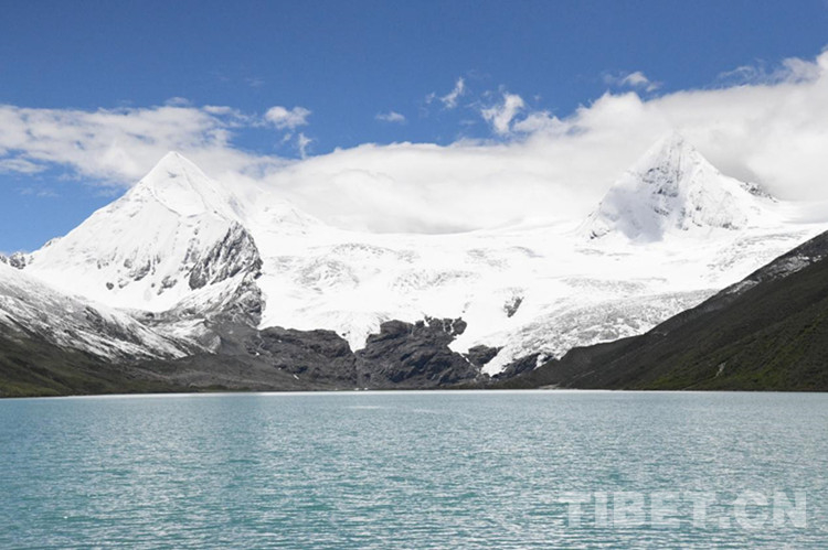 薩普冰川,地處西藏自治區(qū)那曲市比如縣羊秀鄉(xiāng)普宗溝,當地藏族群眾稱為“薩普神山”。薩普因雪豹而得名,意為“雪豹溝深處”。薩普冰川有海洋冰川和山岳冰川的特性,冰川腳下有一個清澈如鏡的湖,藏語稱為“堆炯薩普查仁”或“薩木錯”,意為“如意湖”,是冰川融化形成的。湖水清澈透明,湖面在陽光下波光粼粼,湖中小魚成群。湖水是那曲河重要水源之一,由于湖水和冰川的滋養(yǎng),普宗溝谷底和兩岸水草肥美,牛羊壯碩,蟲草等天然資源十分豐富,被當地百姓譽為“蟲草湖”。