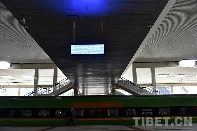圖為6月25日拉薩開往林芝的D2021次動車組列車??吭诶_火車站 攝影:王媛媛