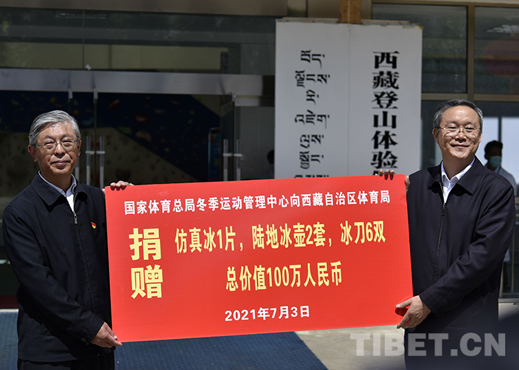中國西藏網訊 7月3日,國家體育總局冬季運動管理中心向西藏自治區(qū)體育局捐贈物資儀式在拉薩市舉行。西藏自治區(qū)體育局獲贈仿真冰、陸地冰壺、冰刀等總價值100萬元的設施設備,助力冬季運動項目發(fā)展。
