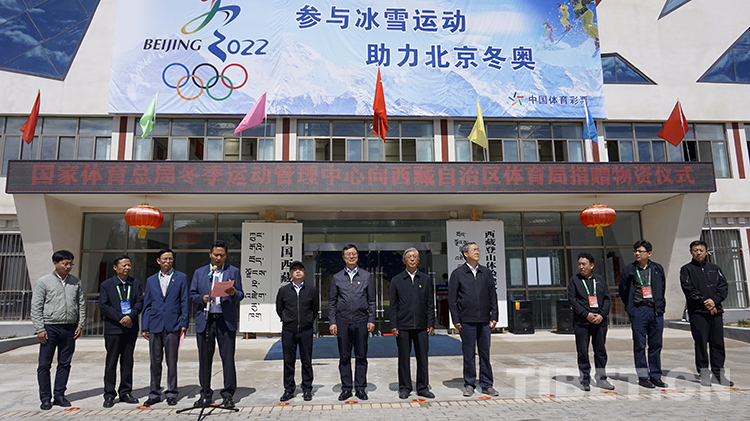 圖為國家體育總局冬季運動管理中心向西藏自治區(qū)體育局捐贈物資儀式現場 攝影:王媛媛